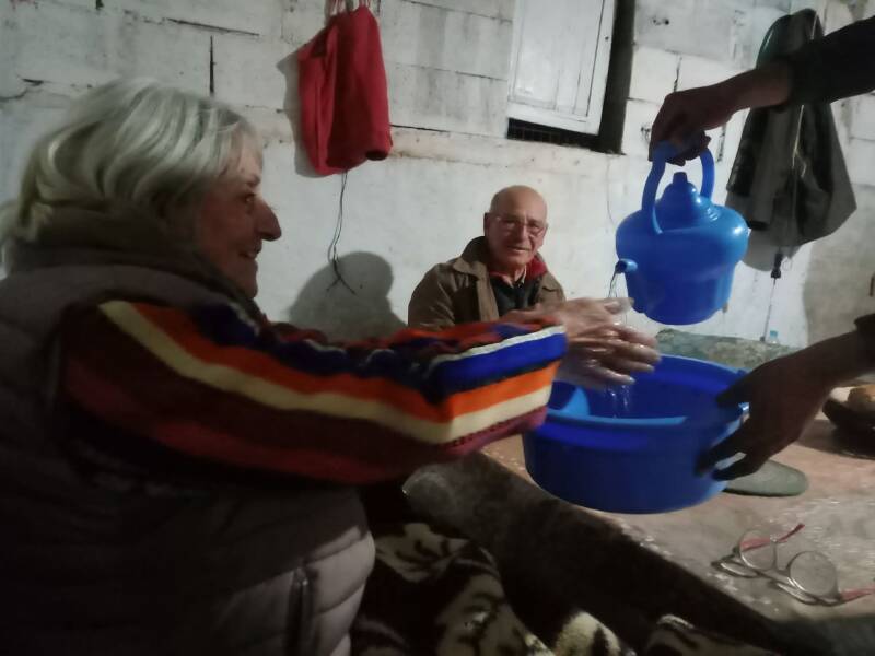 Driss est un fils attentif, ancré dans le respect profond des traditions marocaines. Respectueux de ses parents, attentif aux anciens, il s’affaire avec soin à leur apporter un semblant de confort au quotidien. Ici, il aide sa mère à mettre la table, dépose la bassine et la bouilloire avec de l’eau chaude qu’il a préparée lui-même pour que chacun puisse se laver les mains avant le repas.